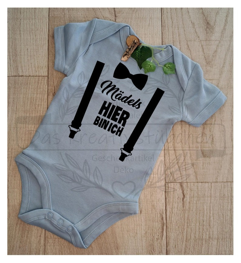 Der Baby Body Kurzarm "Mädels hier bin ich" ist hochwertig verarbeitet und großzügig geschnitten, was ihn sehr angenehm zu tragen macht.