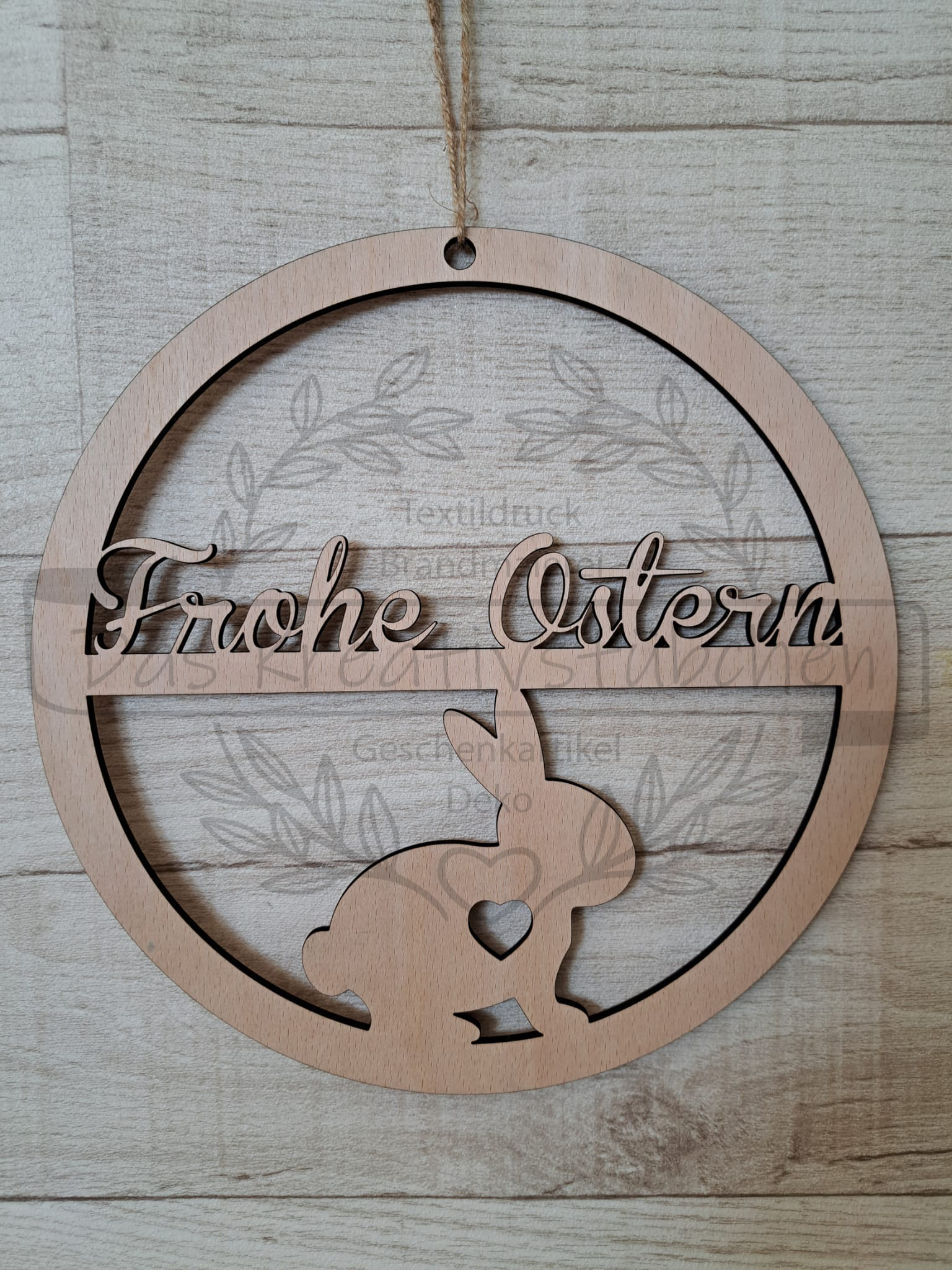 - ein echter Hingucker und sehr Dekorativer Holzkranz mit dem Schriftzug "Frohe Ostern 2"
