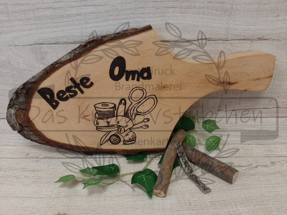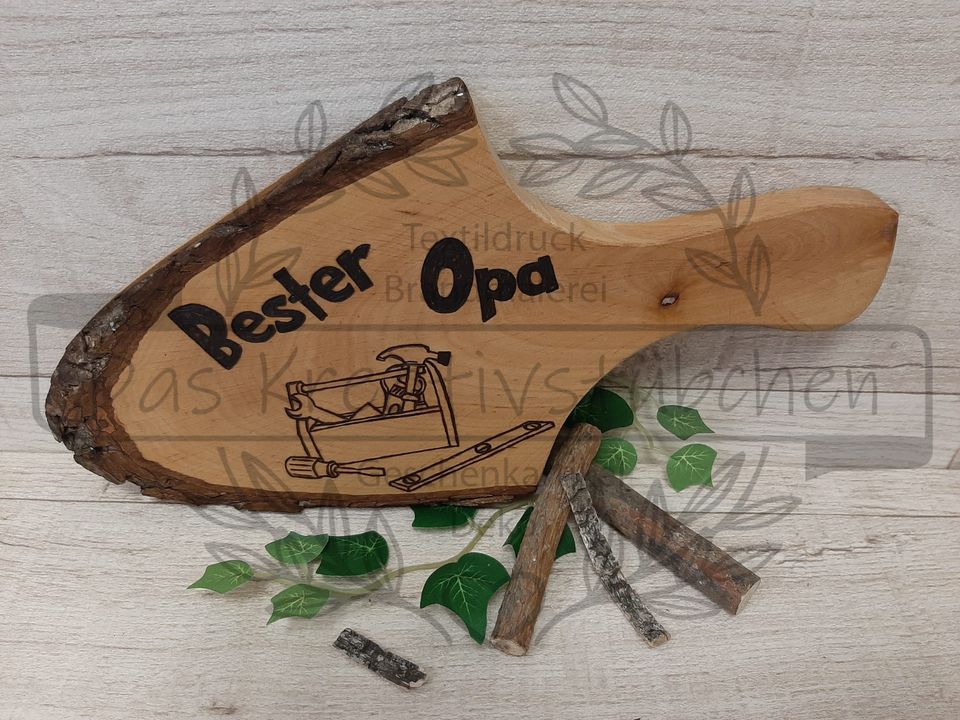 Wir bieten Rindenscheiben mit Griff Beste Oma / Bester Opa.