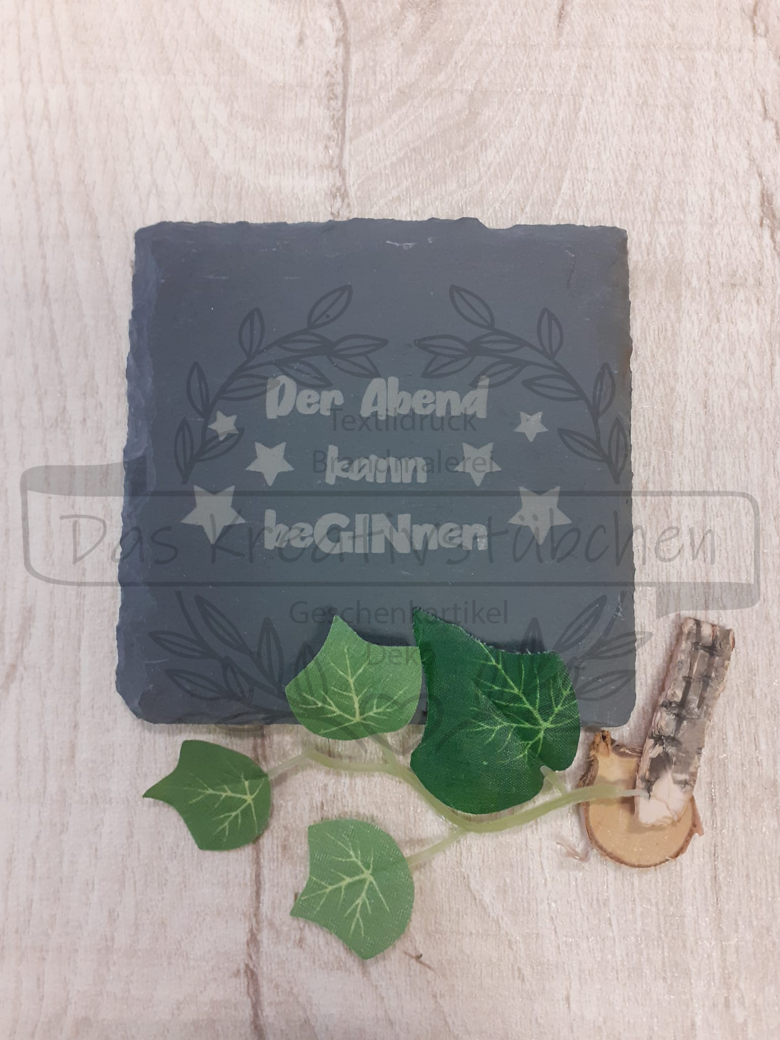 Schieferuntersetzer "Der Abend kann beGINnen"