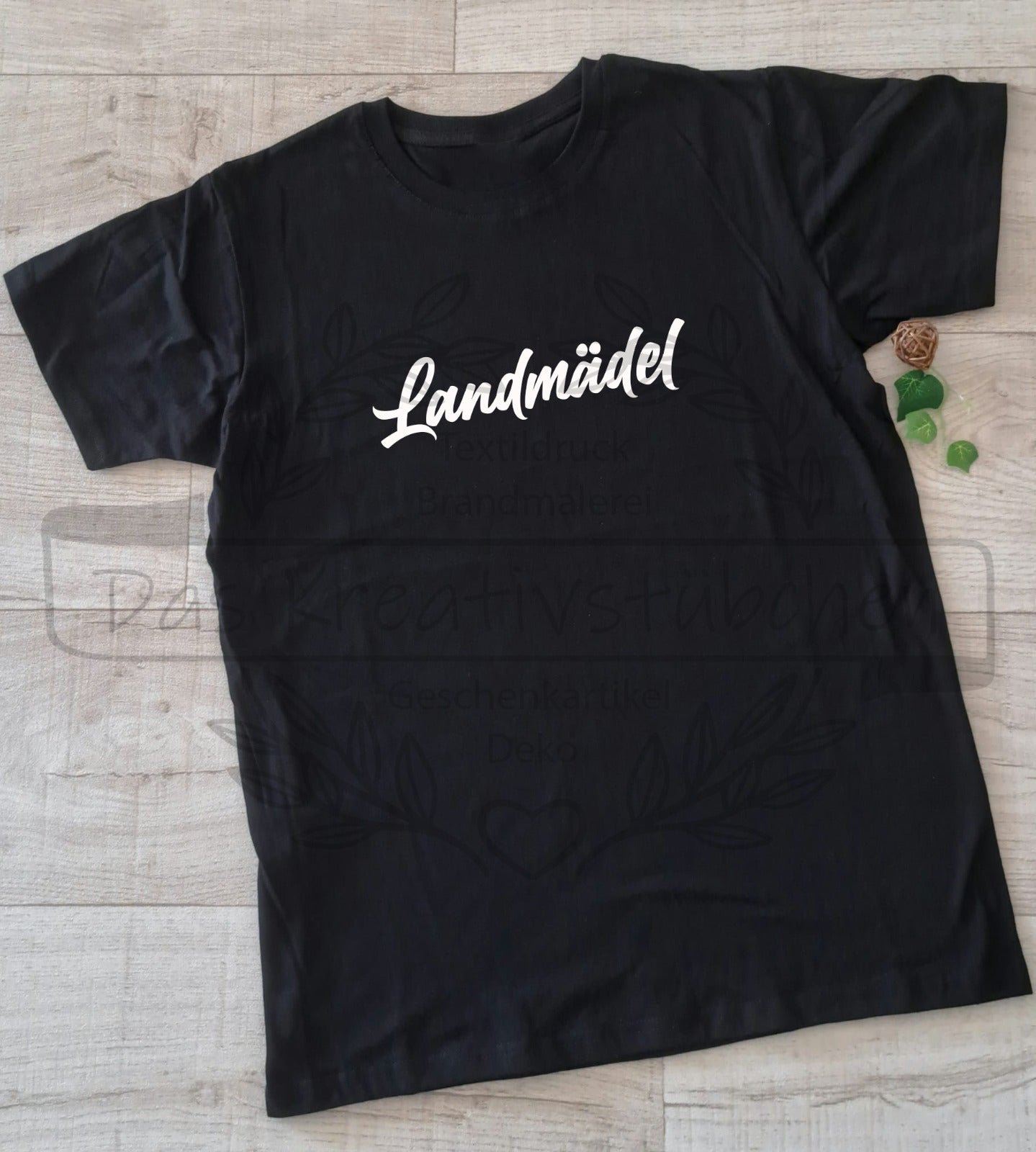 Wir bedrucken Textilien ganz Individuell, wie unser T-Shirt "Landmädel".