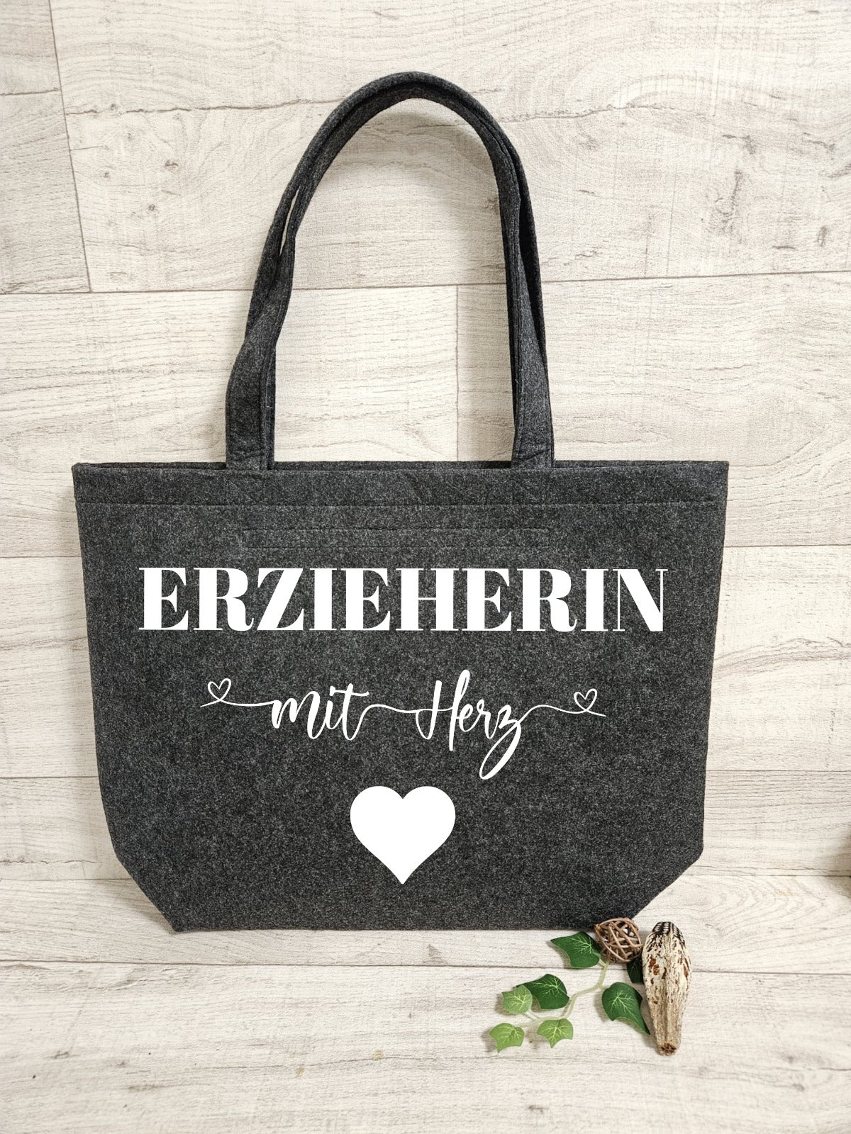 Wir bieten Ihnen diesen hochwertigen Filz-Shopper "Erzieherin mit Herz". Ideal als Geschenk zum Abschied, zum Geburtstag oder zu Weihnachten.
