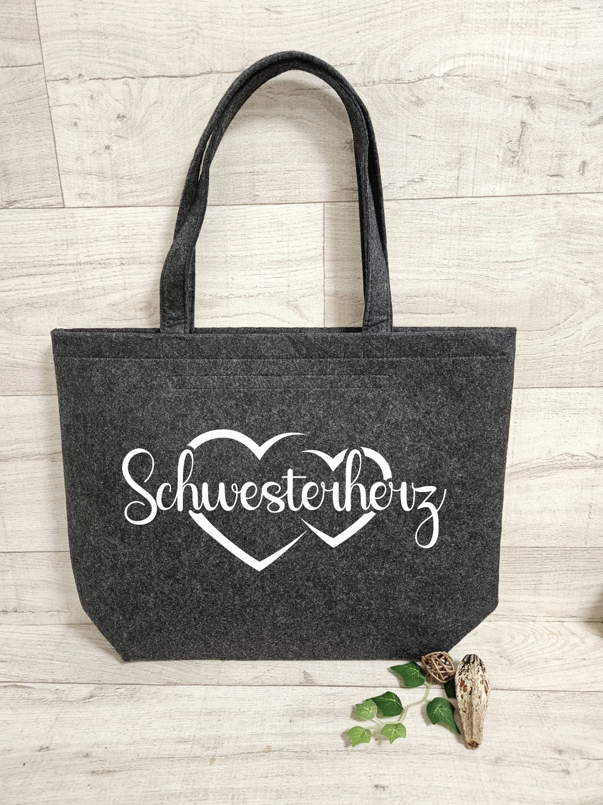 Wir bieten Ihnen diesen hochwertigen Filz-Shopper "Schwesterherz". Ideal als Geschenk zum Geburtstag, zu Weihnachten oder einfach zwischendurch um "Danke" zu sagen.