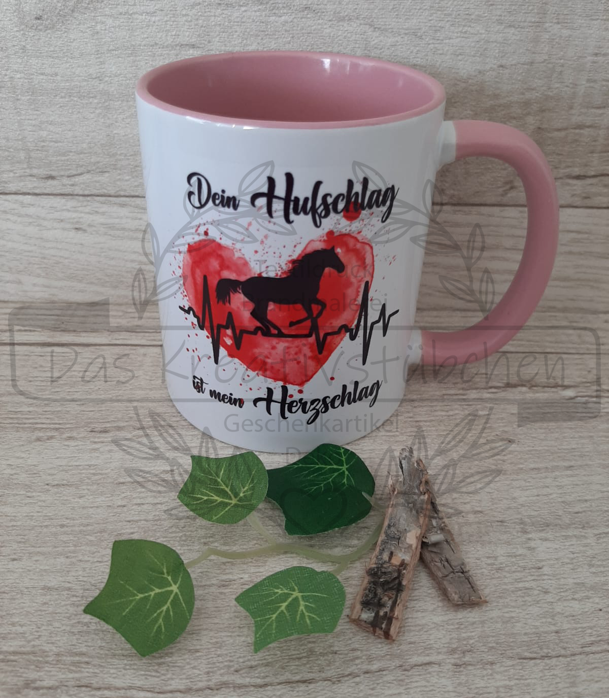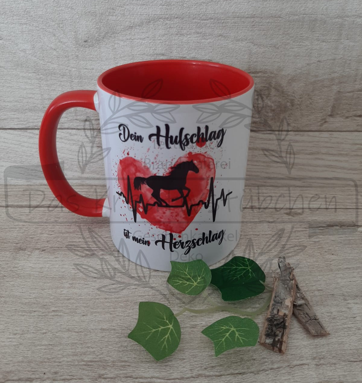 Wir bieten diese Tasse mit dem Spruch "Dein Hufschlag ist mein Herzschlag" an.